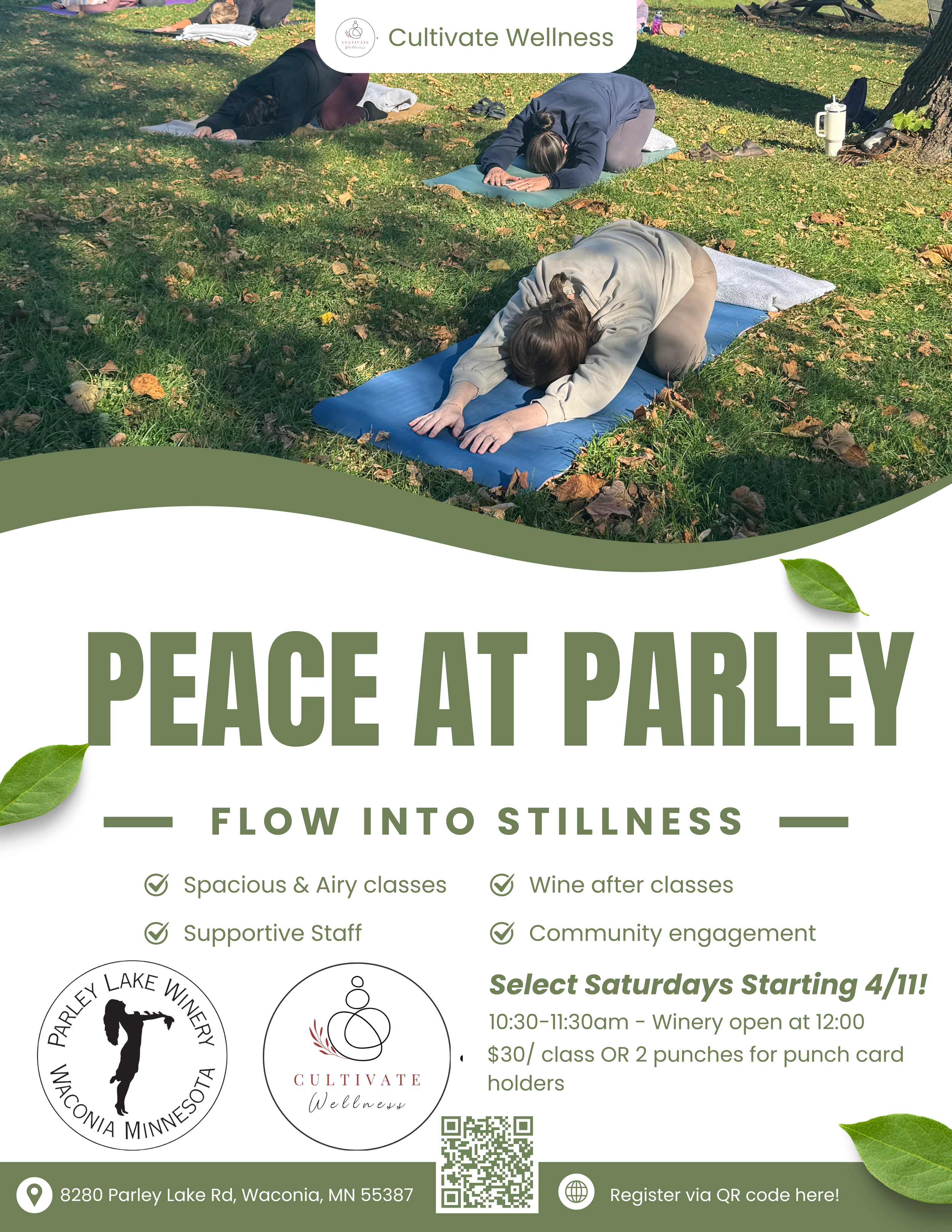 Saturday, May 16th join us for a class lead by Sam & Trisha from Cultivate Wellness in Waconia for Pilates/ Somatic Flow Fusion 10:30AM-11:15AM