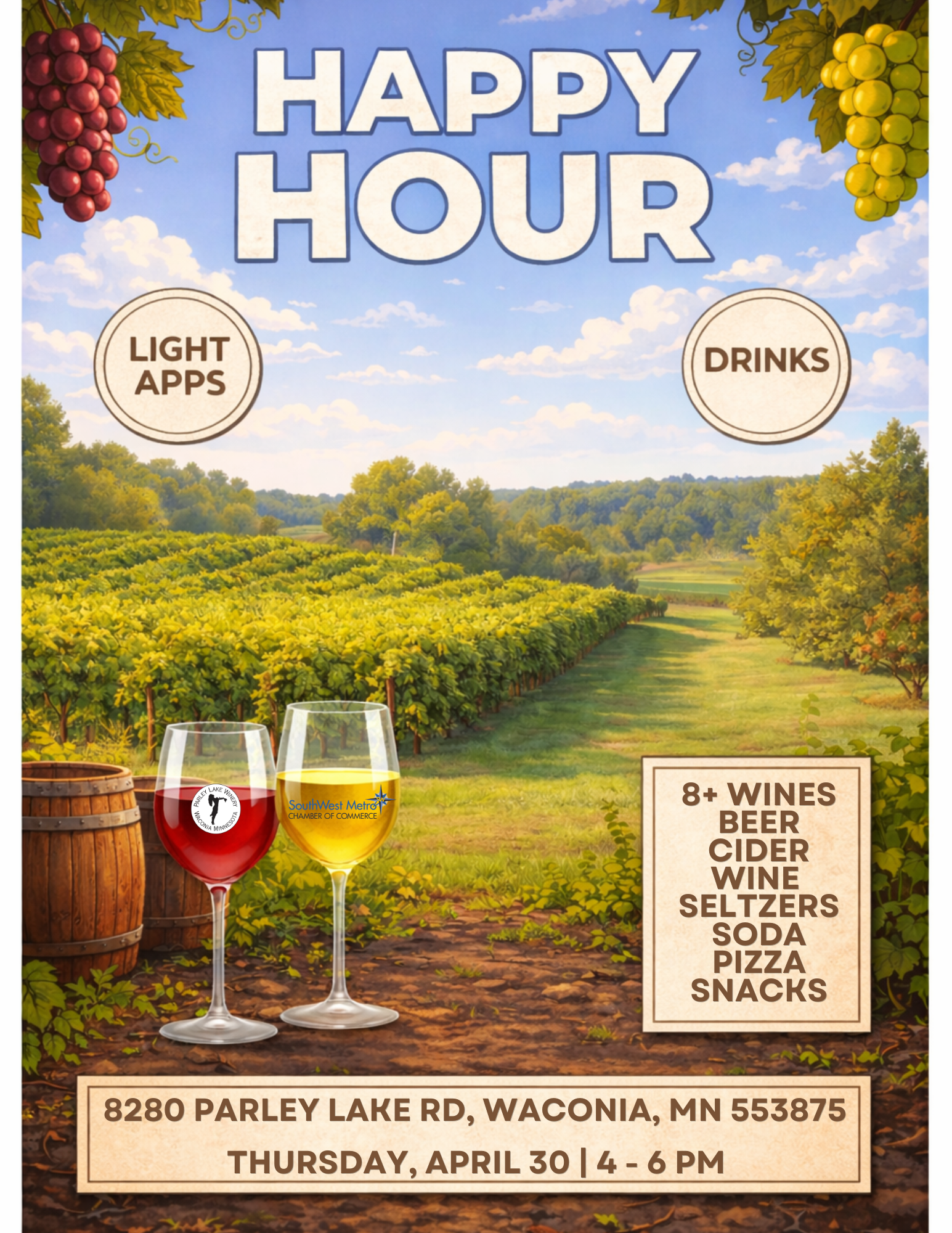 As the weather warms up, join fellow Chamber members for a relaxed evening of networking, conversation, and connection in a beautiful vineyard setting. This Happy Hour is the perfect opportunity to unwind, build relationships, and enjoy the start of spring with your local business community.